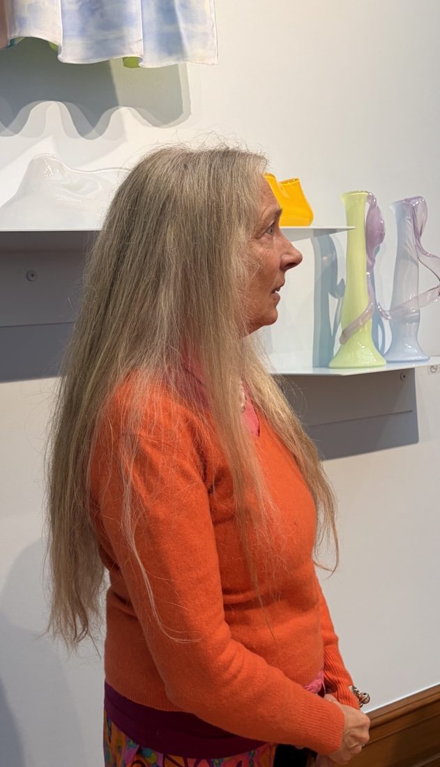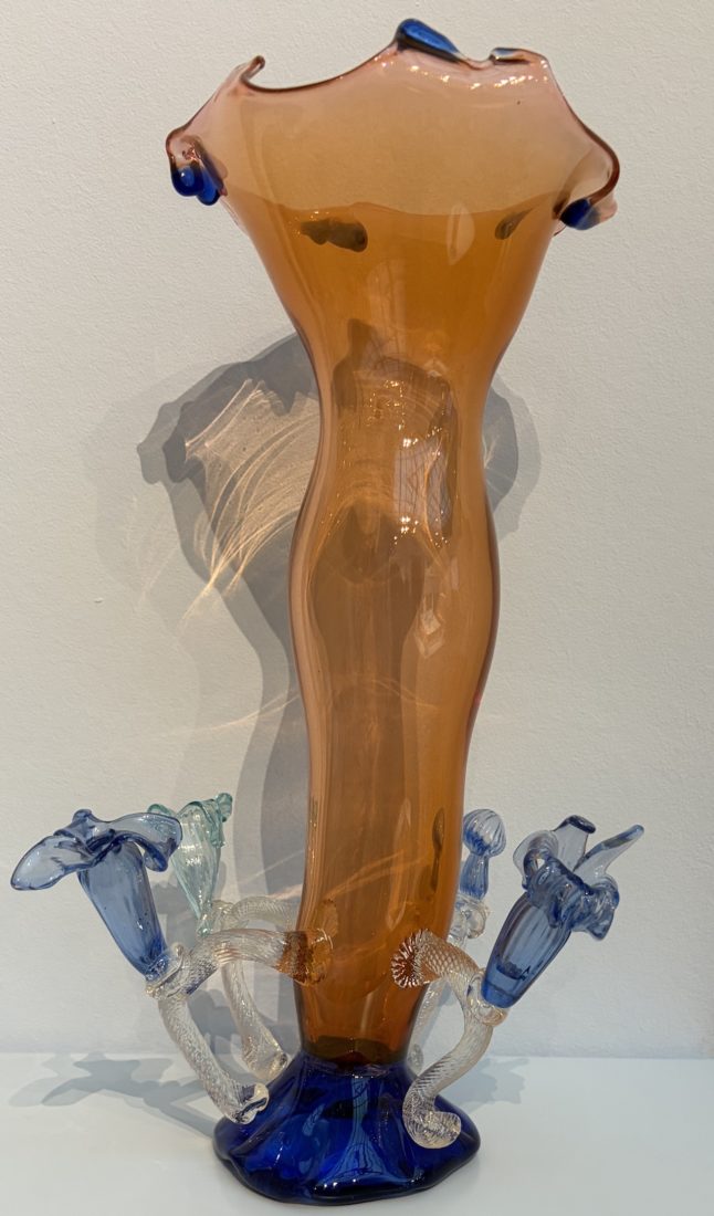La structure du Cirva a permis à l’artiste d’explorer les potentiels du verre soufflé, les pâtes de verre, les collages de verre plat, le sablage, les grisailles, ainsi que la sensualité des matières, et d’observer de grands artistes tels Erik Dietman, Osman, Sylvain Dubuisson, Martin Szekely, Didier Tisseyre… Elle évoque également Petr Janecký avec qui elle conçoit, en Tchéquie, 20 des vases montrés lors de cette exposition genevoise, ainsi que sa rencontre magique avec Jaroslav Sara, graveur à la roue, réputé pour rechercher la clarté dans chaque ligne gravée dans le verre.